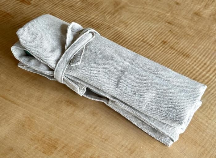 大切な音叉を優しく包むのは、ナチュラルな風合いが美しい麻布の専用ケース。日本の職人が一つひとつ心を込めて縫製しました。使うほどに手に馴染み、愛着が深まります。